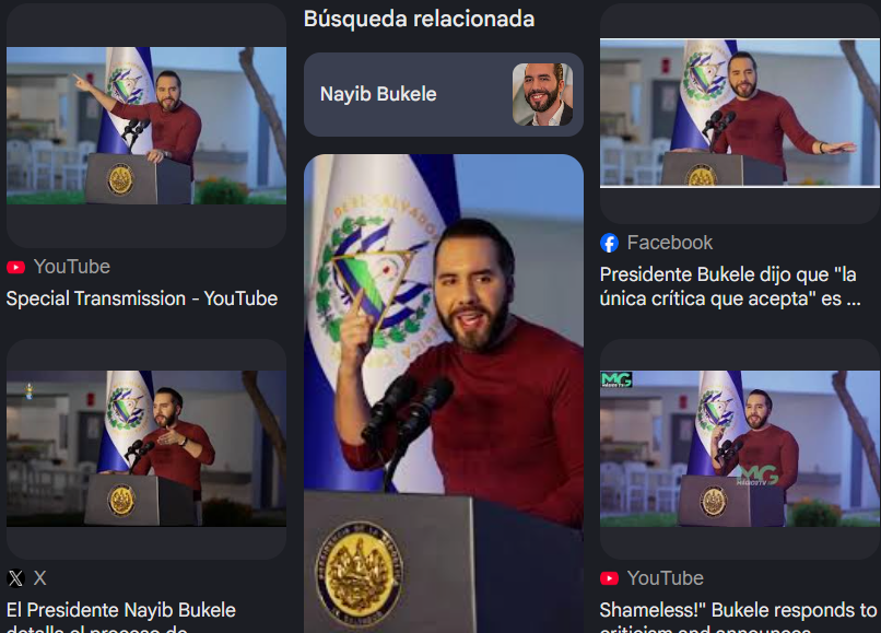 Una búsqueda inversa en Google permite rastrear en el clip original hasta el 22 de mayo de 2025, cuando Bukele lanzó públicamente el programa de remodelación de centros escolares “Dos escuelas por día”.