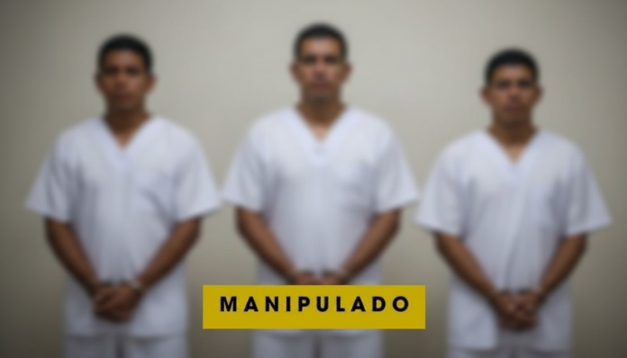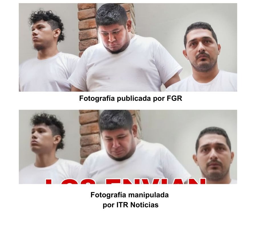 Otra imagen publicada por ITR Noticias muestra a tres de los imputados con rostros manipulados, exponiendo sus rostros diferentes a la publicación original de la FGR.